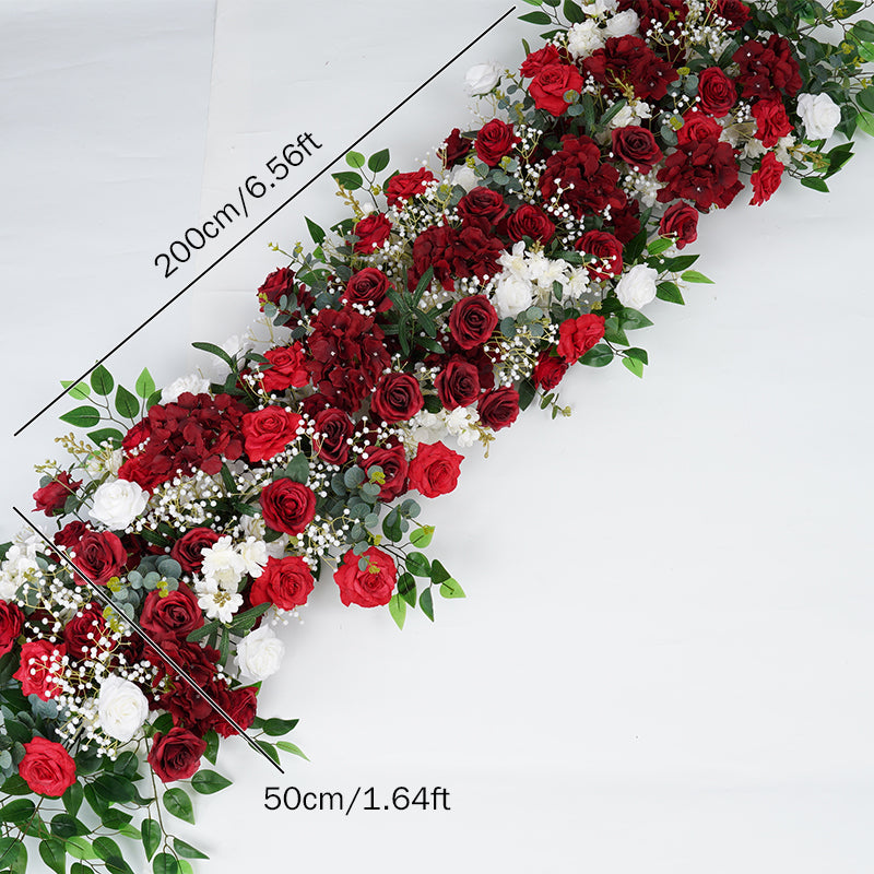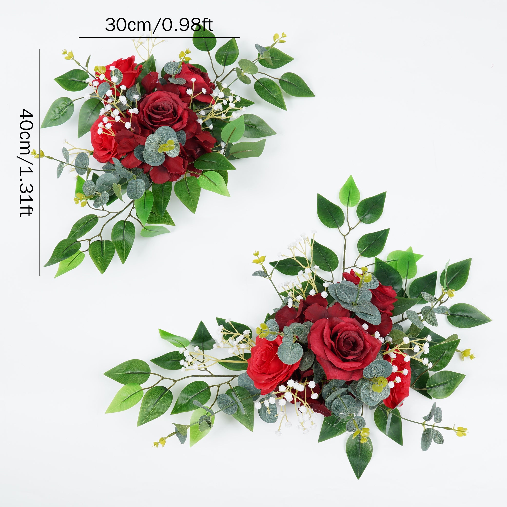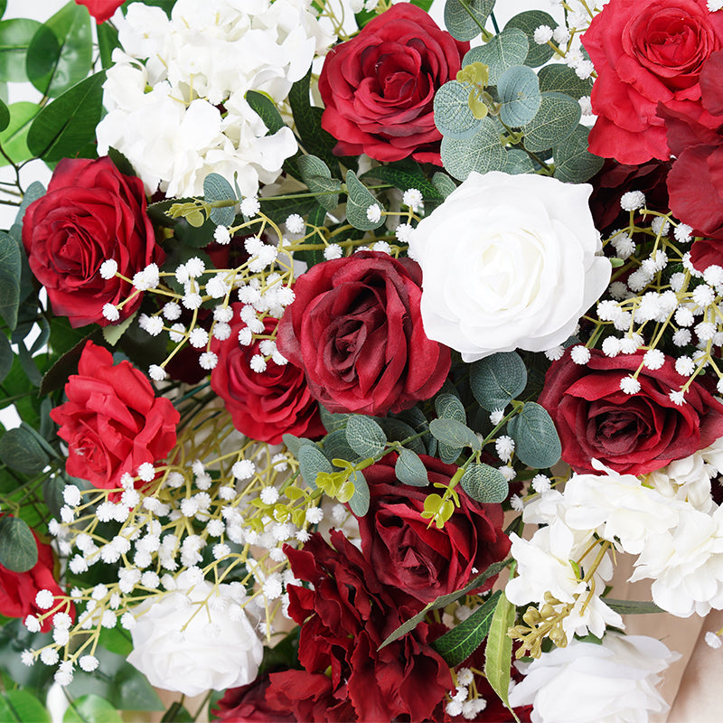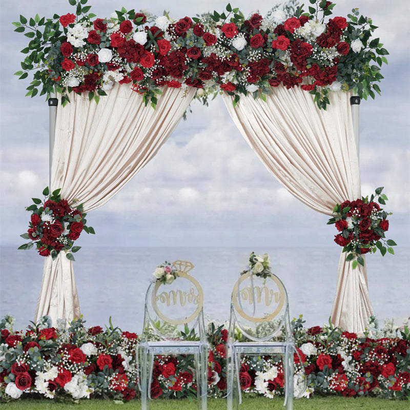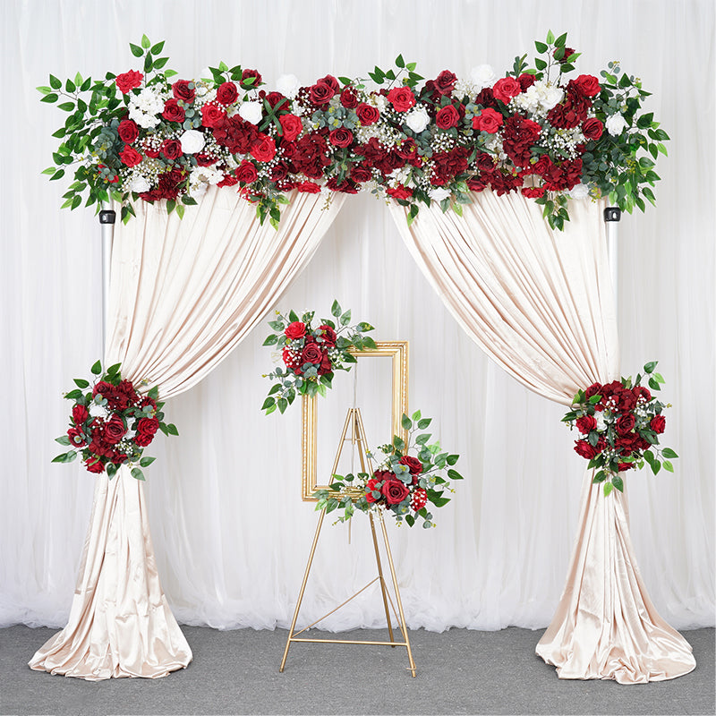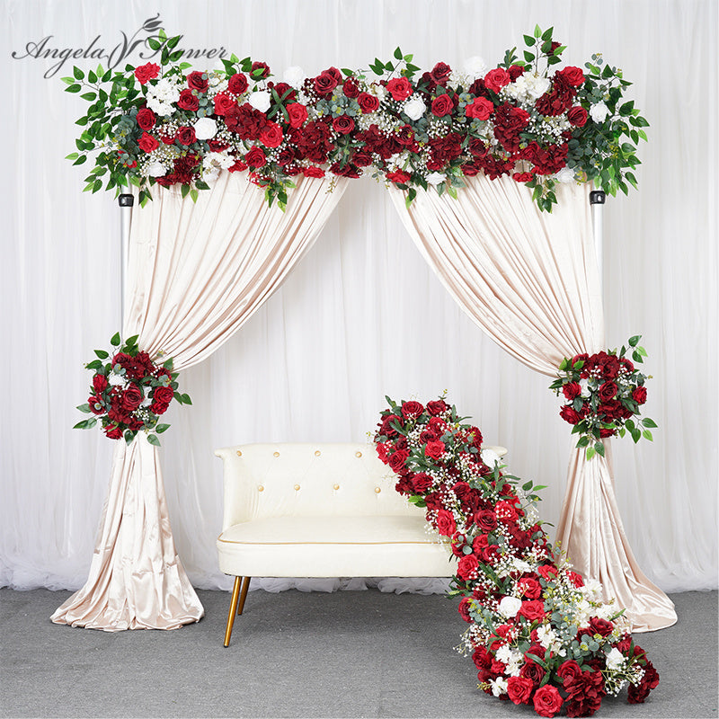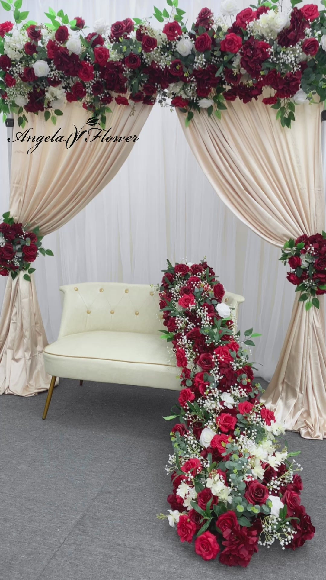 A7174 A7673 Burgundy Rose White Baby Breath Grass Wedding Arch Red Flower