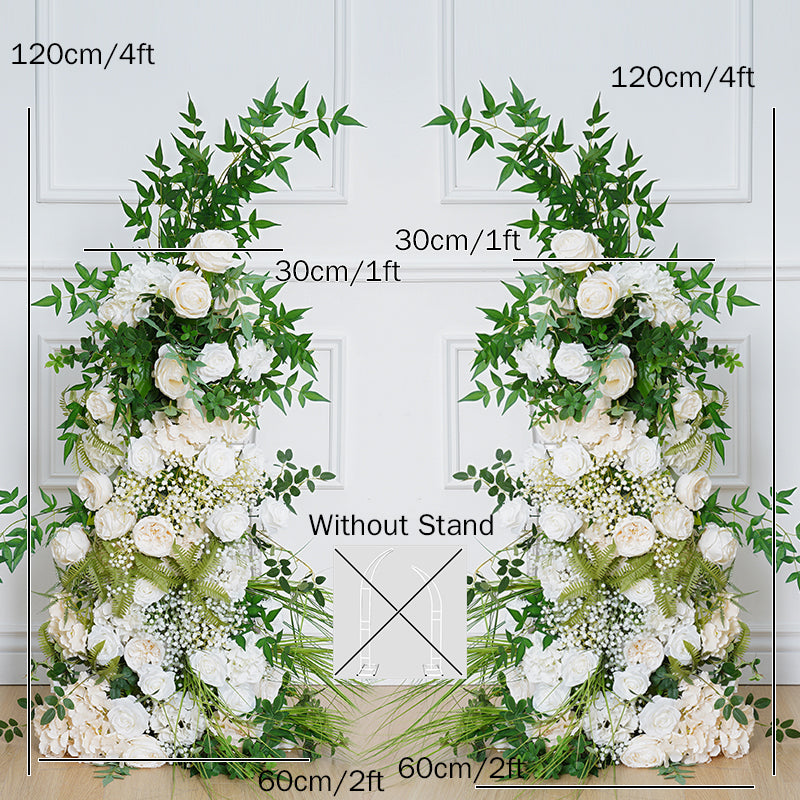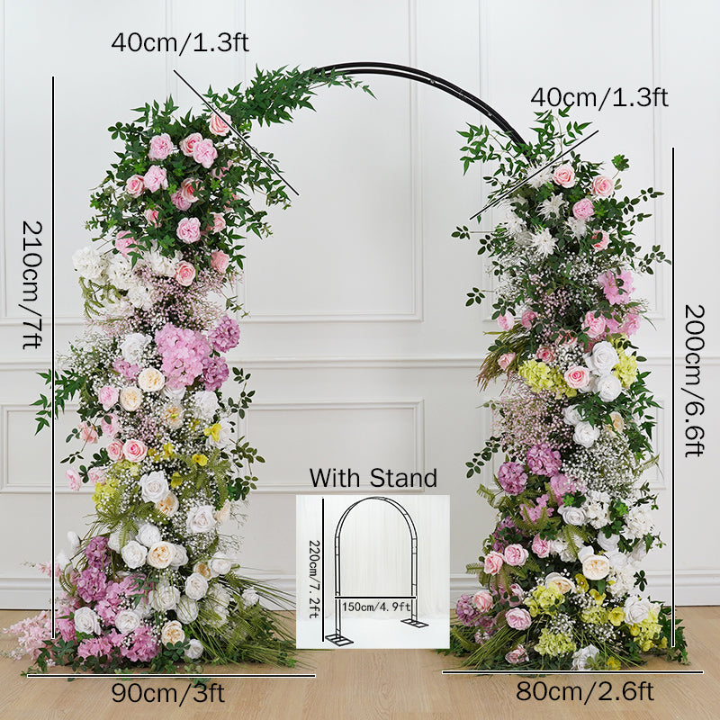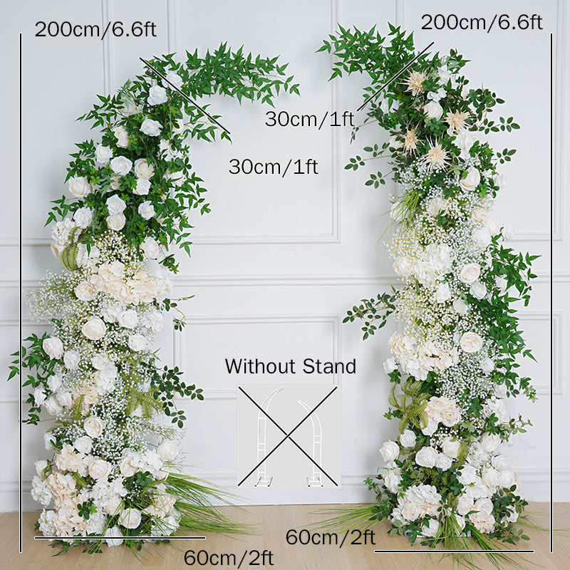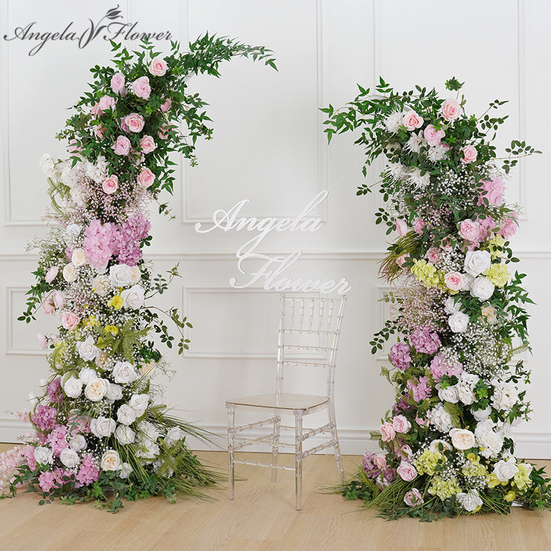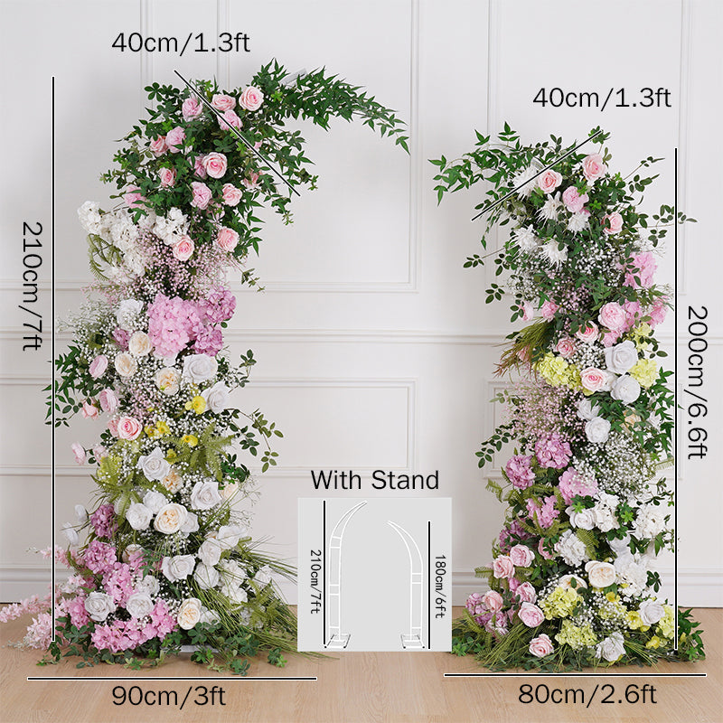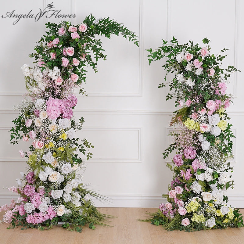 A7847 Pink White Rose Babysbreath Flower Row Decor Wedding Backdrop Horn Arch