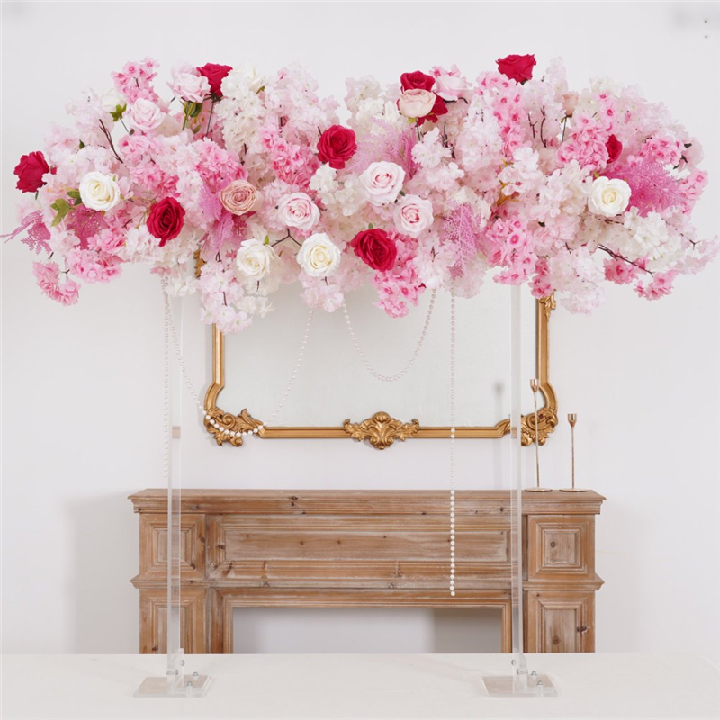A8209 Pink Cherry Blossoms Rose Flower Row Arrangement Decor Acrylic Stand Table Centerpieces