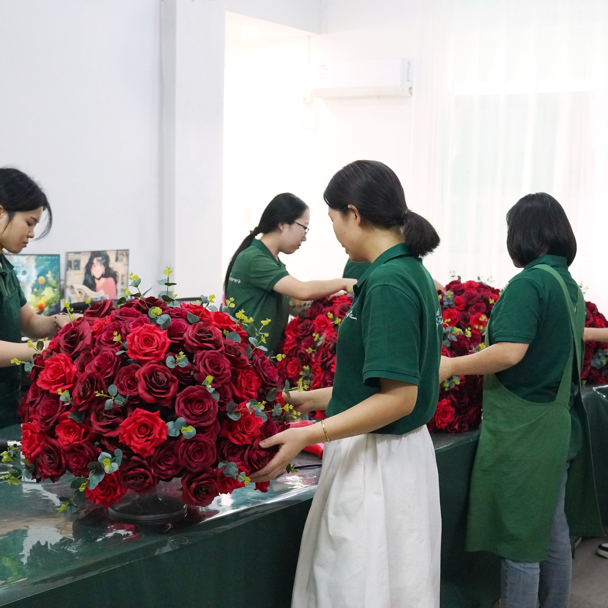 Our warehouse covers an area of more than 3,000 square meters, with more than 30,000 kinds of available flowers material. We provide personalized service according to the different needs of customers, and have been highly praised by customers for a long time.