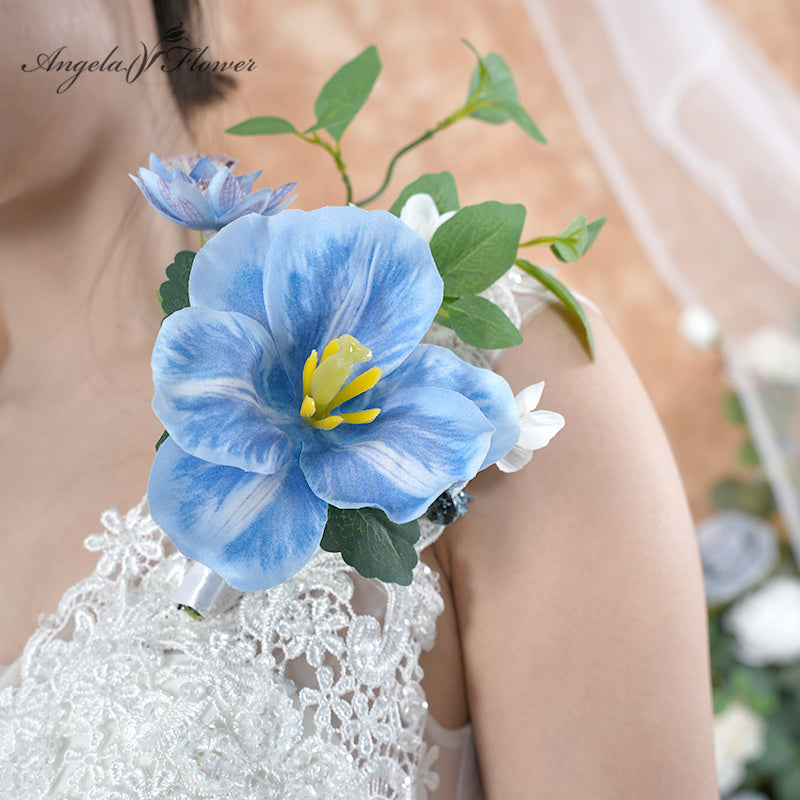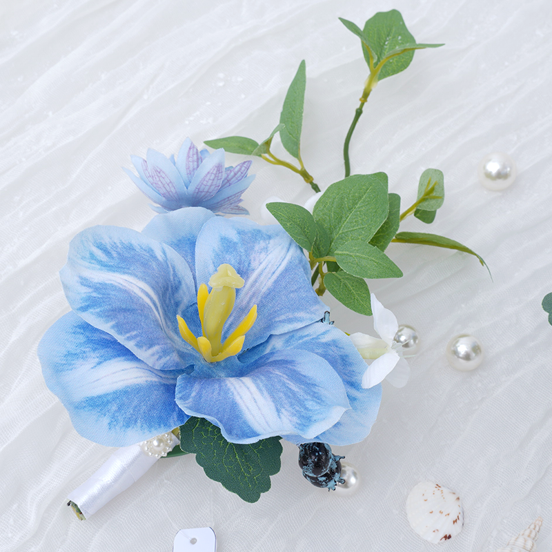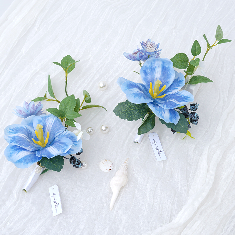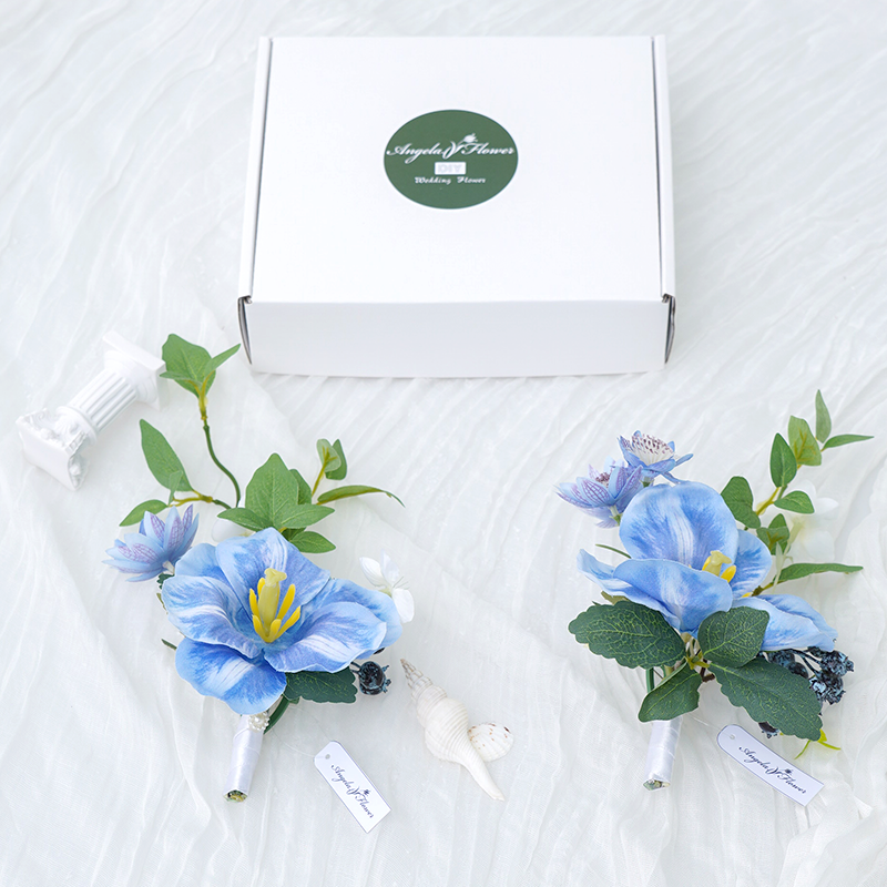 A8634 Blue White Series With Greenery Corsage Flower Bridal Wedding