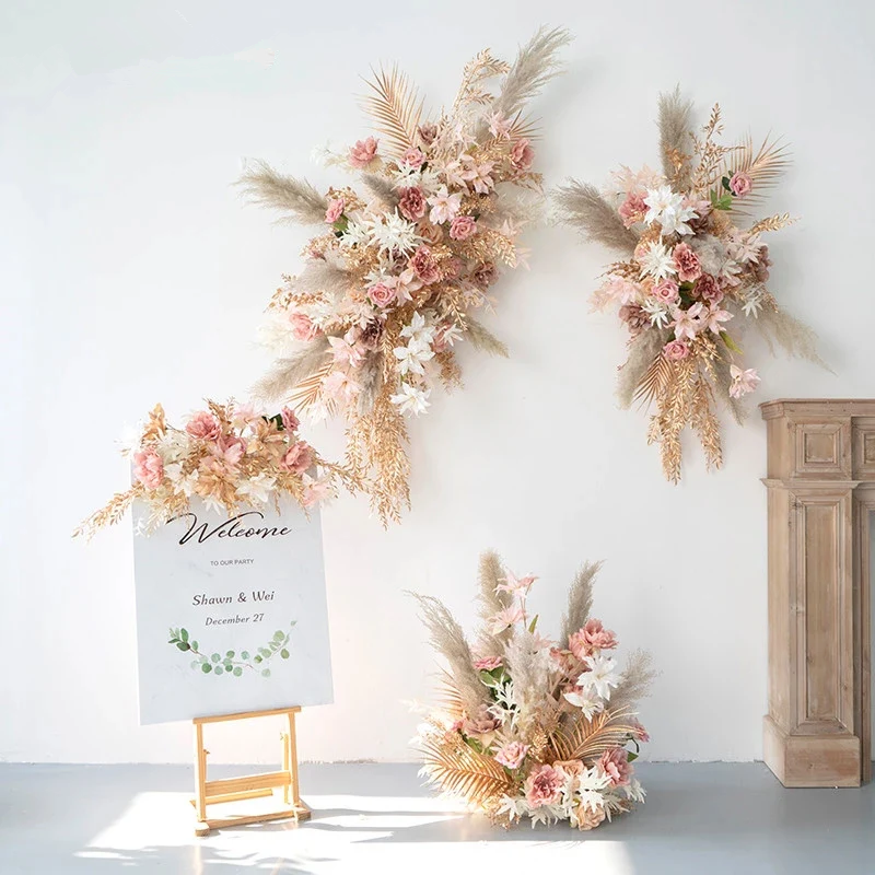 A216 A7542 Simulation Pampas Grass Gold Leaf Hanging Artificial Flower Row Wedding Arch