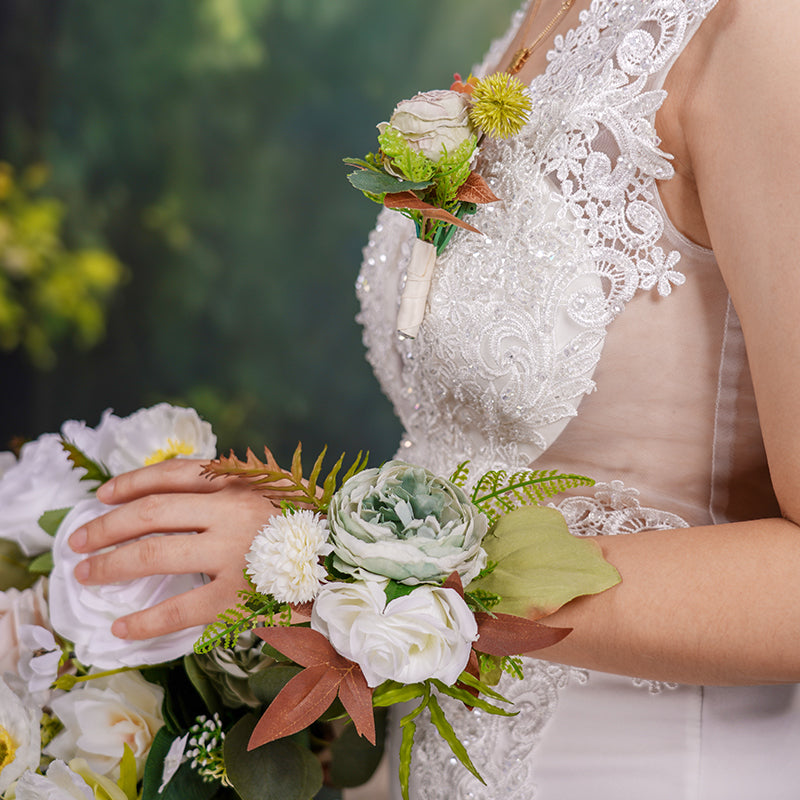 A8639 White Champagne Series Wedding Ladies Wrist Flower