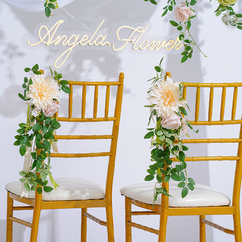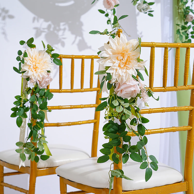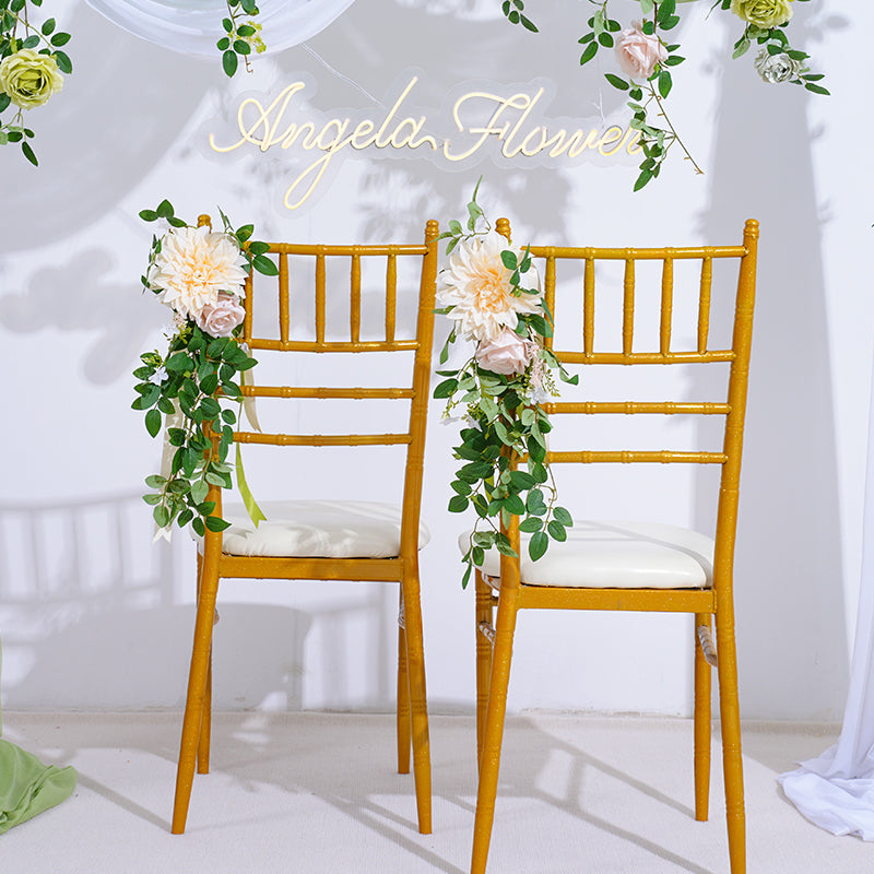 A863911 Champagne White Series With Greenery Chair Flower Wedding