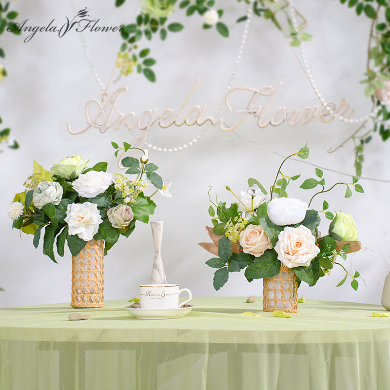 A863916 Champagne White Series With Greenery Vase Flower Wedding Decor