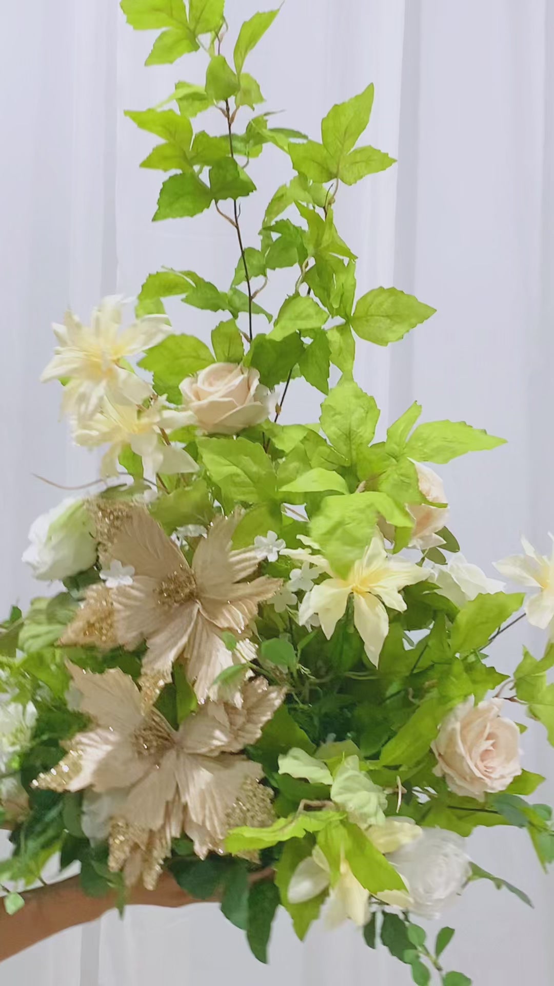【Manual】: Due to shipping and packaging reasons, the artificial flowers may be squeezed, please use the steam or hair dryer to make the flowers stretchm will be ok.