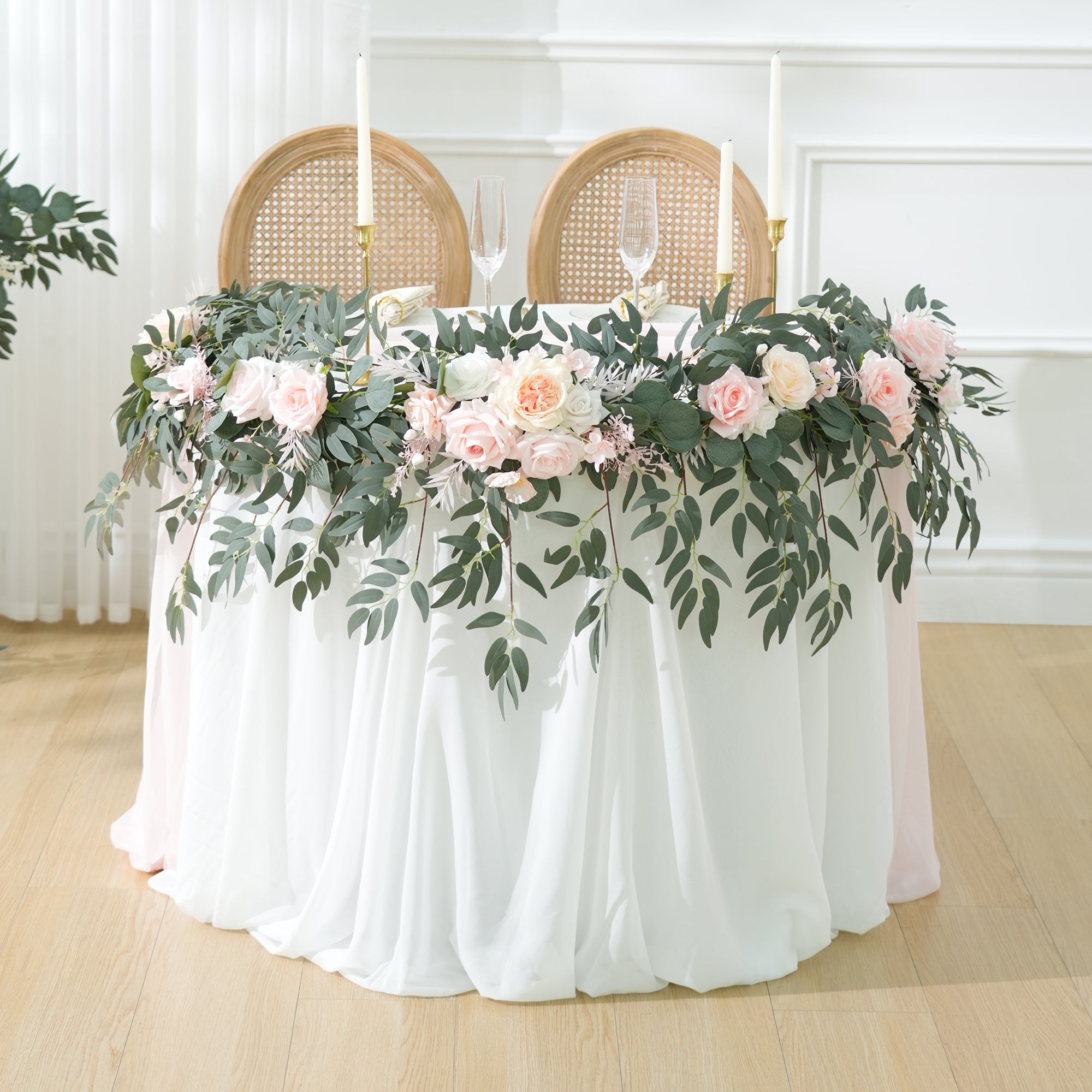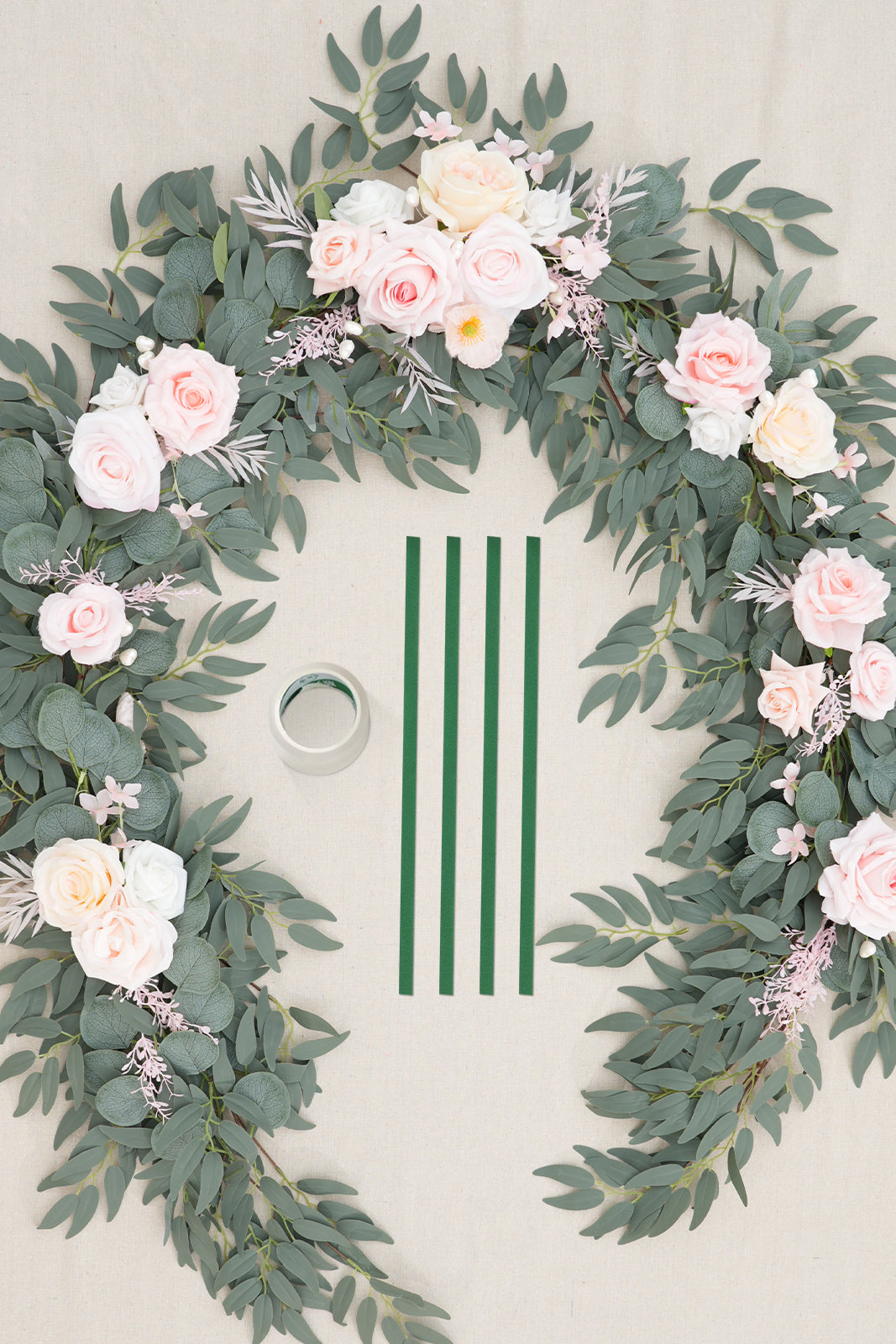 Color Inspiration: Pink Champagne 7ft Silk Flower Garland, expertly crafted with lifelike silk roses, graceful willow vines, delicate baby’s breath, and elegant eucalyptus leaves. Perfect for weddings, parties, or home decor, this garland adds a touch of romantic elegance to any setting. Its premium materials ensure durability and a stunning appearance without fading. Easy to shape and reuse, it’s the ideal hassle-free decoration for creating a dreamy atmosphere.