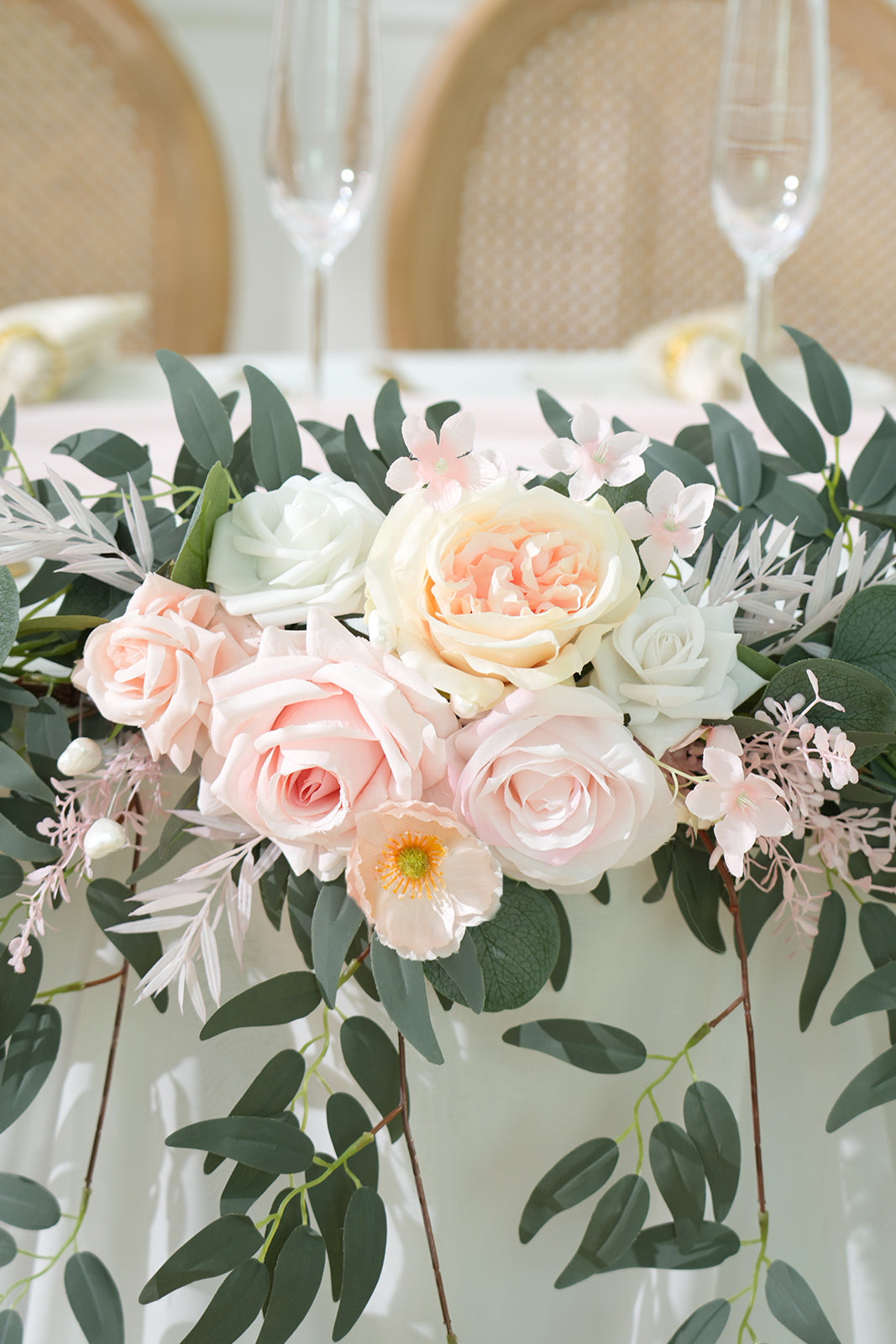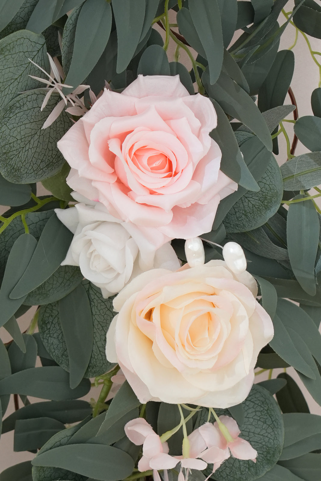 Main Materials: silk roses, willow vines, baby's breath, eucalyptus leaves, etc.