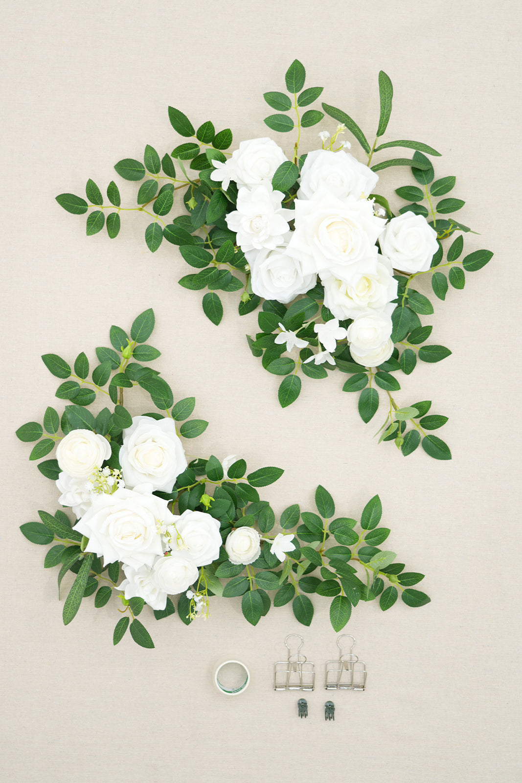Package: Pre-fabricated flower swag x 2 metal clips x2, green plastic clip x2, double-sided tapex1 (not include wooden sign & stand).