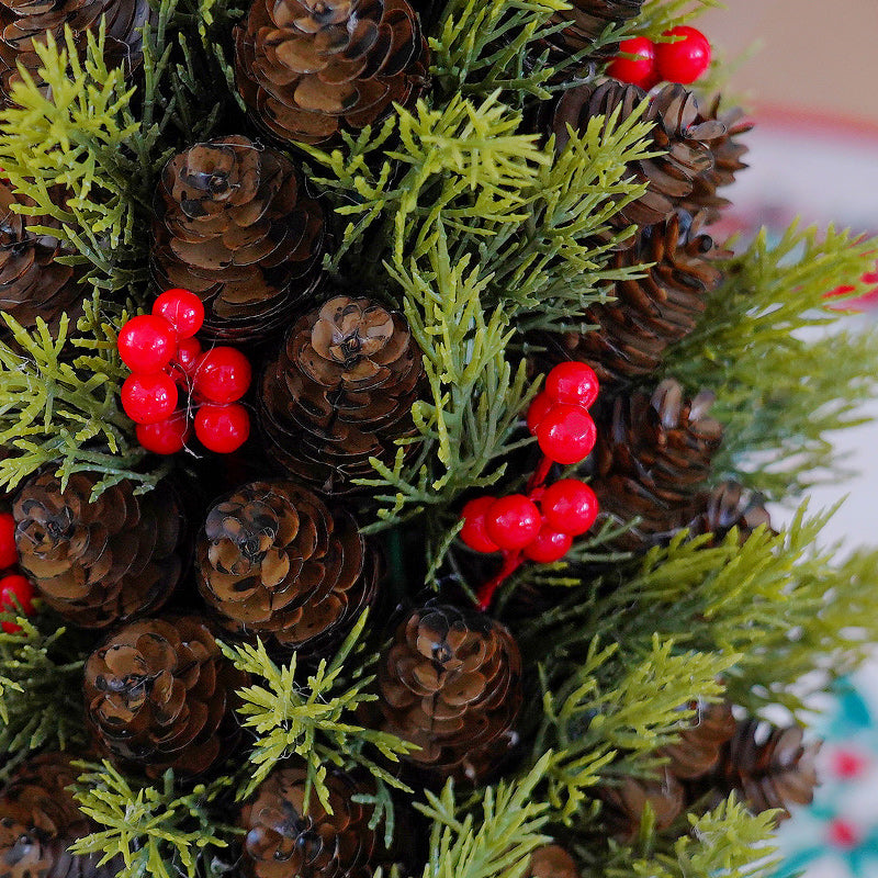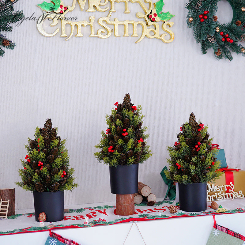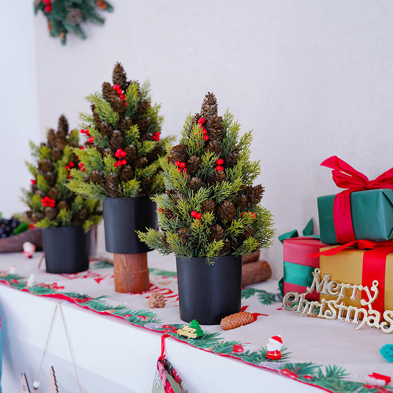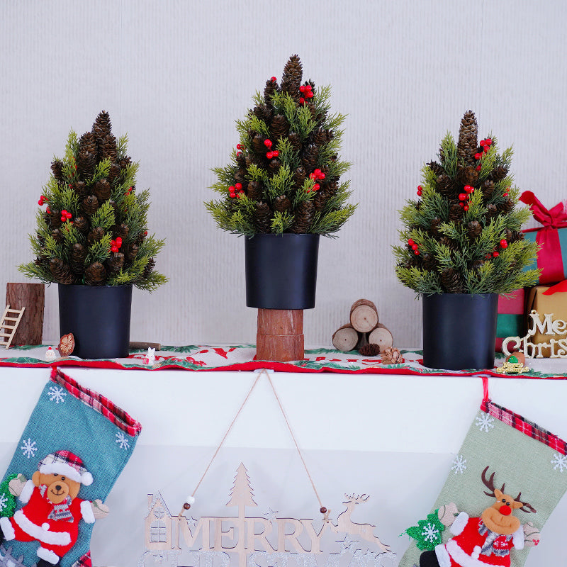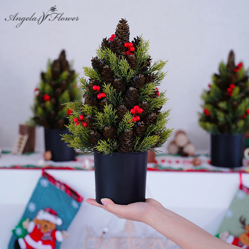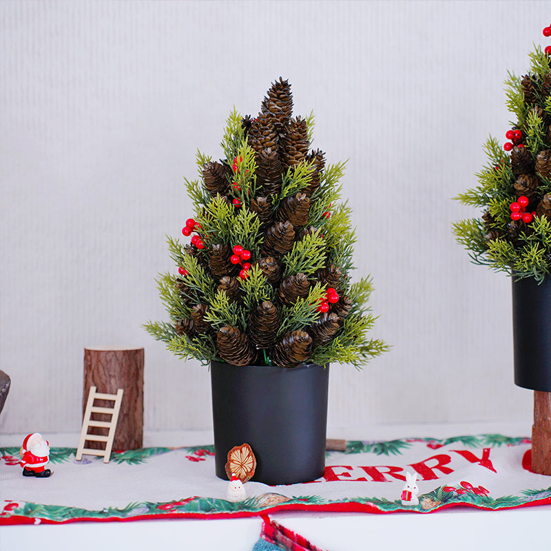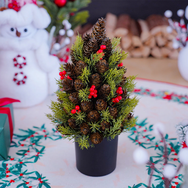 39cm Pinecone Red Berry Christmas Potted Decorations Display Props SD0456