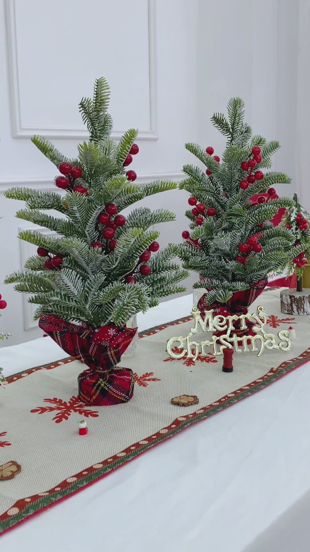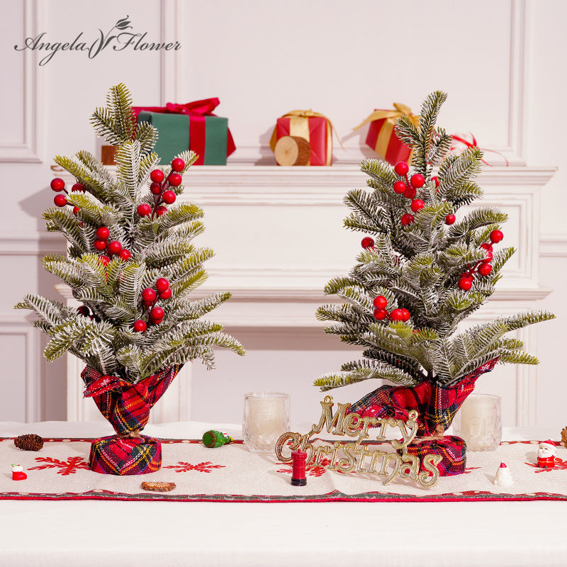SD0362 Red berry pine needle mini Christmas tree potted home decoration