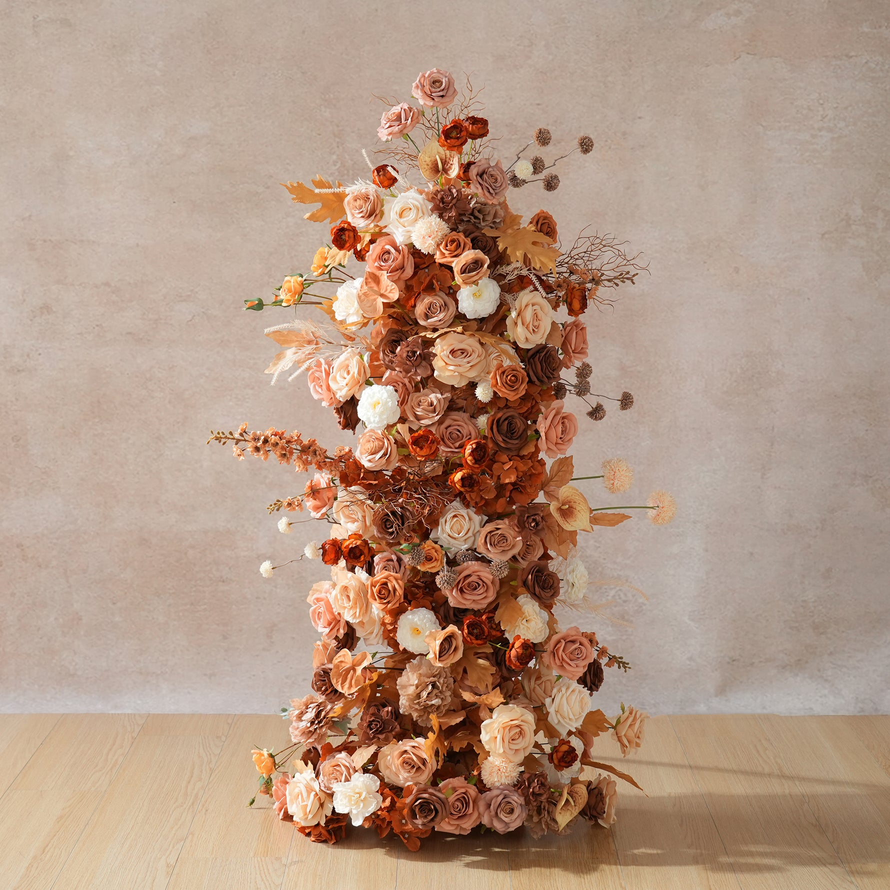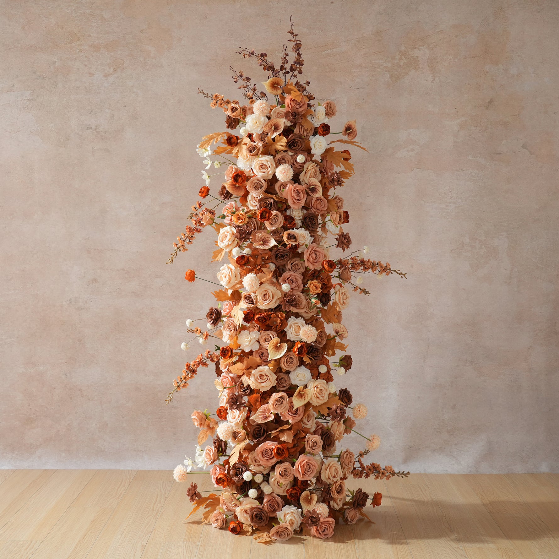 Color Inspiration: Caramel Warm Brown x Light Coffee White Wedding Floral Arrangement Contrasting shades of caramel brown and light coffee white create a sophisticated, relaxed vibe. Creamy peach-pink roses soften the richness, while deep brown foliage adds a vintage touch. Sweet without being cloying, this arrangement radiates romantic autumn charm—a foolproof choice you can trust with your eyes closed!