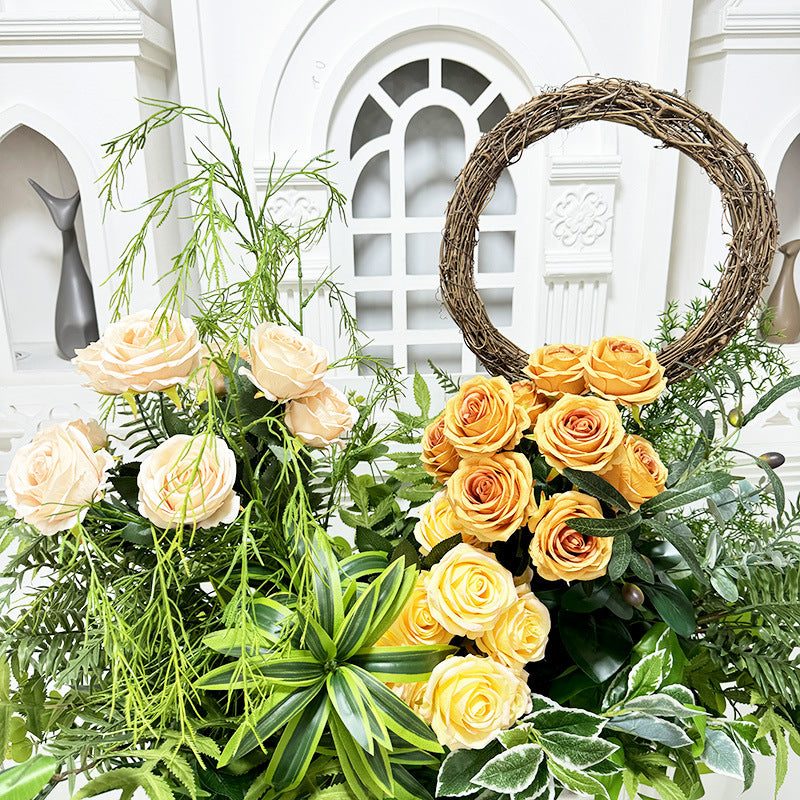 【Manual】: Due to shipping and packaging reasons, the artificial flowers may be squeezed, please use the steam or hair dryer to make the flowers stretchm will be ok.