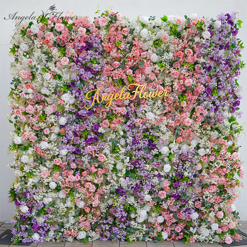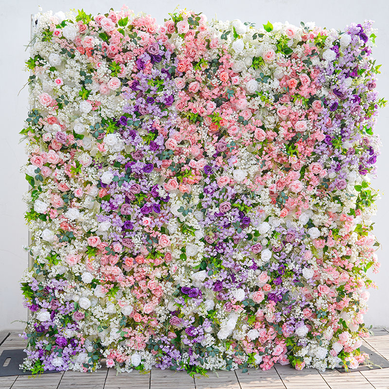 A8628 Roses Baby Breath Fabric Base 5D Roll Up Curtain Flower Wall
